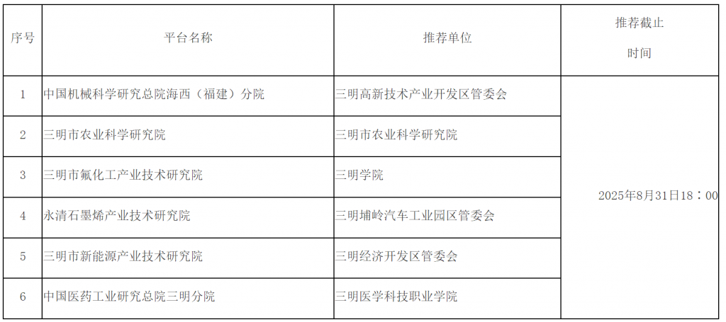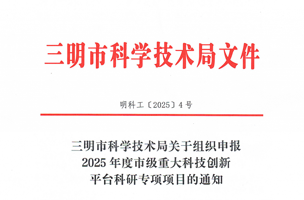 附:三明市科學(xué)技術(shù)局關(guān)于組織申報2025年度市級重大科技創(chuàng)新平臺科研專項項目的通知